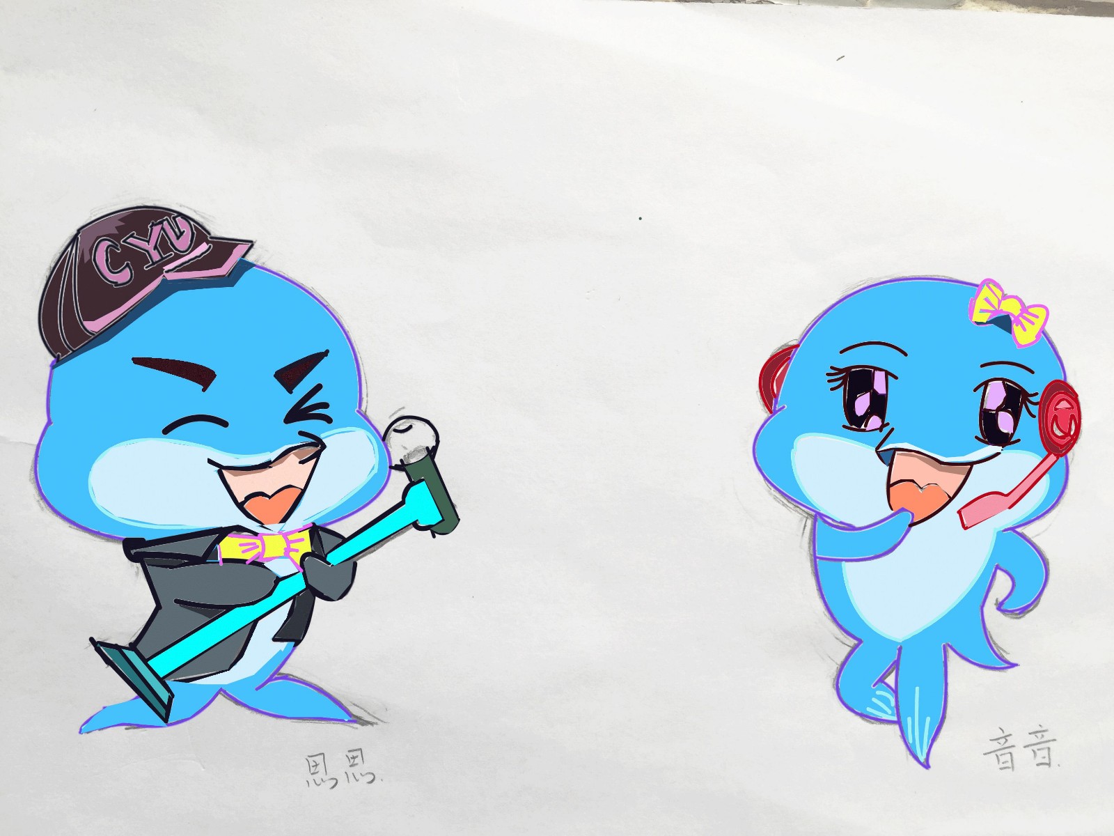 公仔的形象是以海豚的形象出现的,海豚拥有大自然最美的声音海豚音。两只海豚一只叫思思一只叫音音。
