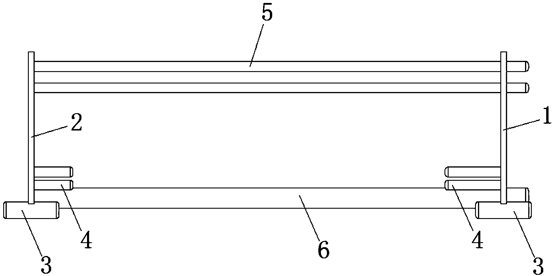 本实用新型公开了一种生长石墨烯的支架,包括前挡板、后挡板、滑杆、分割杆、悬挂杆和支撑杆;所述前挡板与后挡板的底部的两侧均连接有滑杆,前挡板和后挡板的下部位置相对应地分别固定有至少两根分割杆;所述悬挂杆的一端安装在后挡板的上部,另一端与前挡板上的相应的孔滑动连接;所述支撑杆的一端固定在后挡板上,另一端与前挡板上的相应的孔滑动连接。本实用新型通过在前挡板与后挡板之间设置分割杆和悬挂杆,有效地利用了石英管的内部空间,增加了石墨烯的生长面积,从而简化了操作步骤,节约了时间及材料成本。